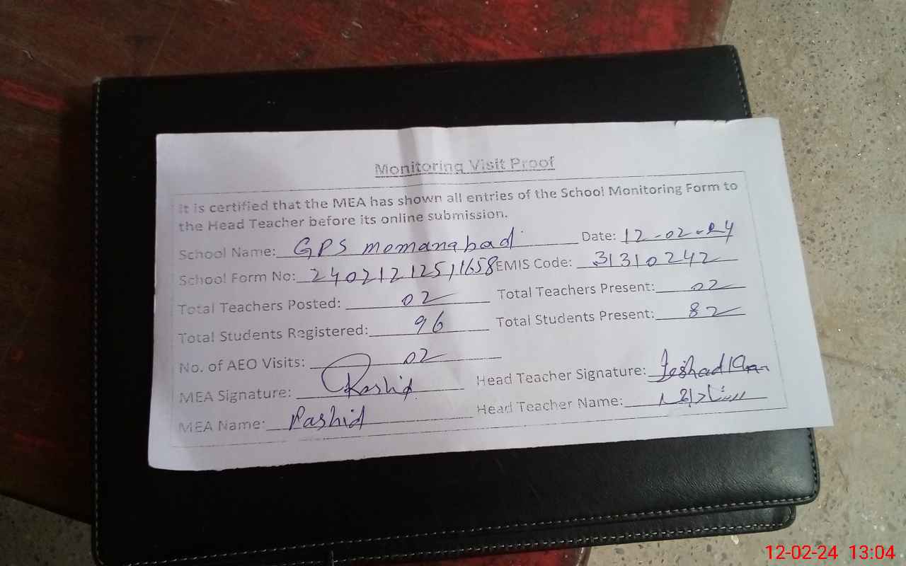 | EMIS Code: 31310242 | Name of School: GPS MOMAN ABAD | |||