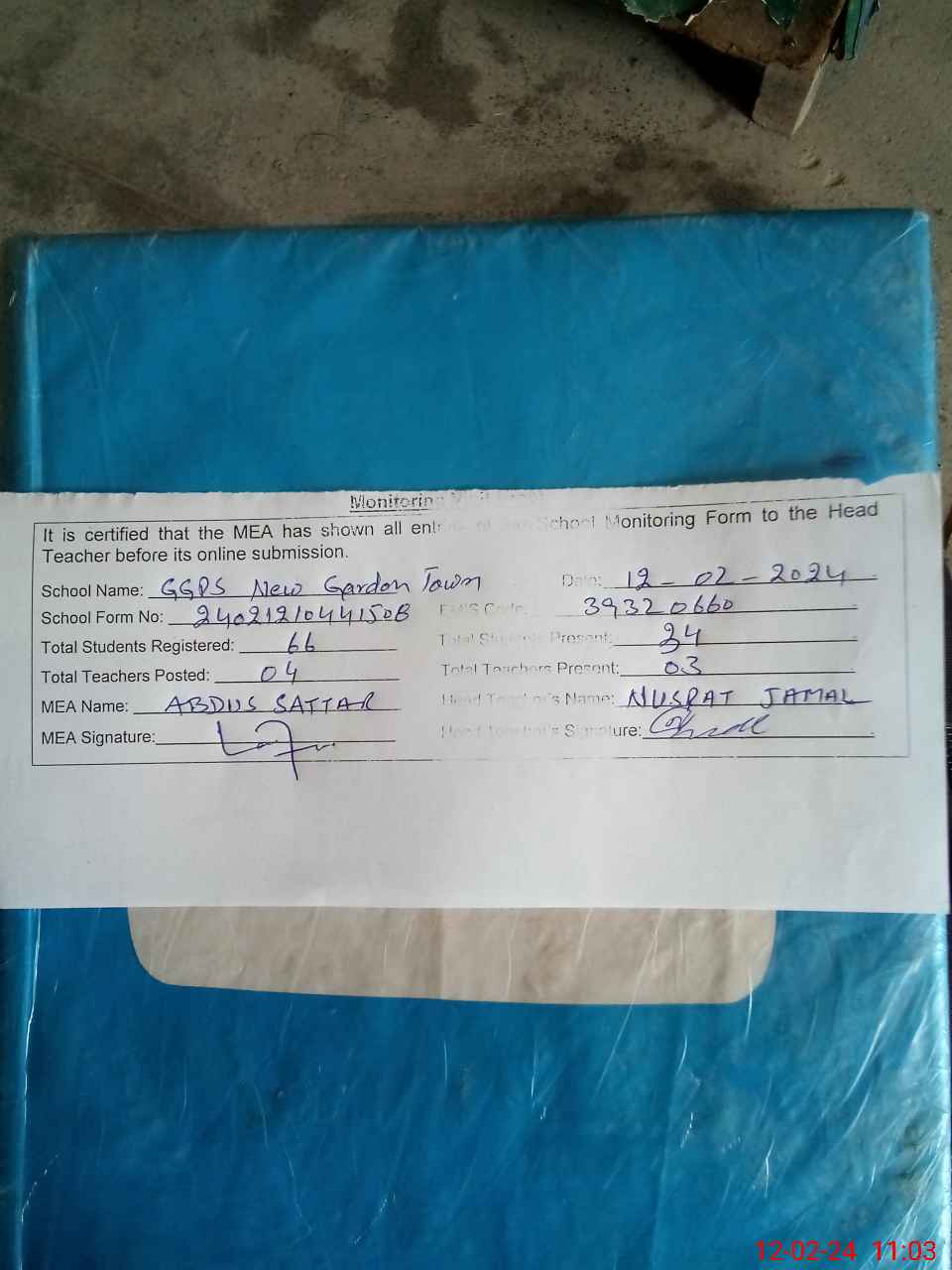 | EMIS Code: 39320660 | Name of School: GGPS NEW GARDEN TOWN OKARA | |||