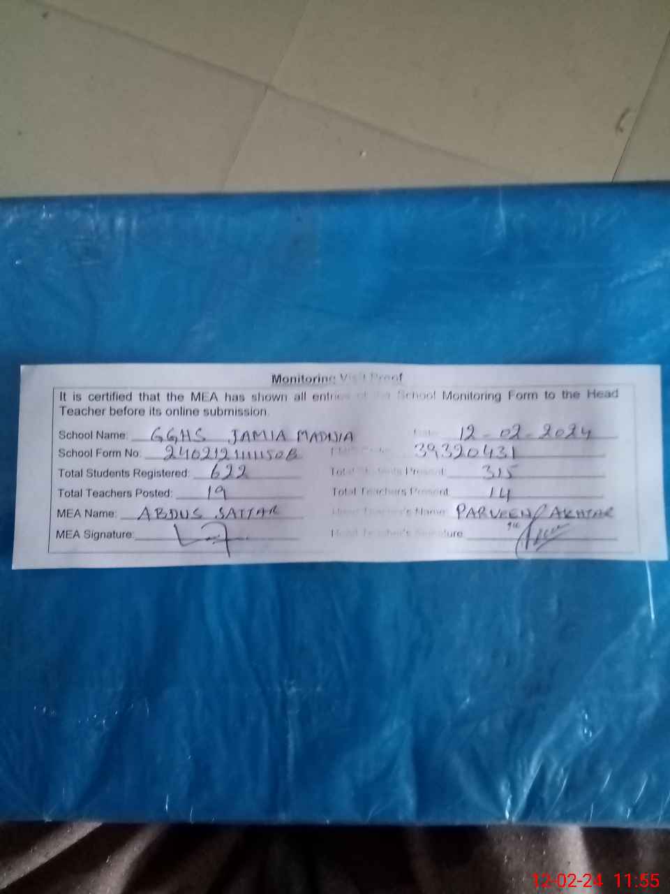 | EMIS Code: 39320431 | Name of School: GGHS JAMIA MADNIA | |||