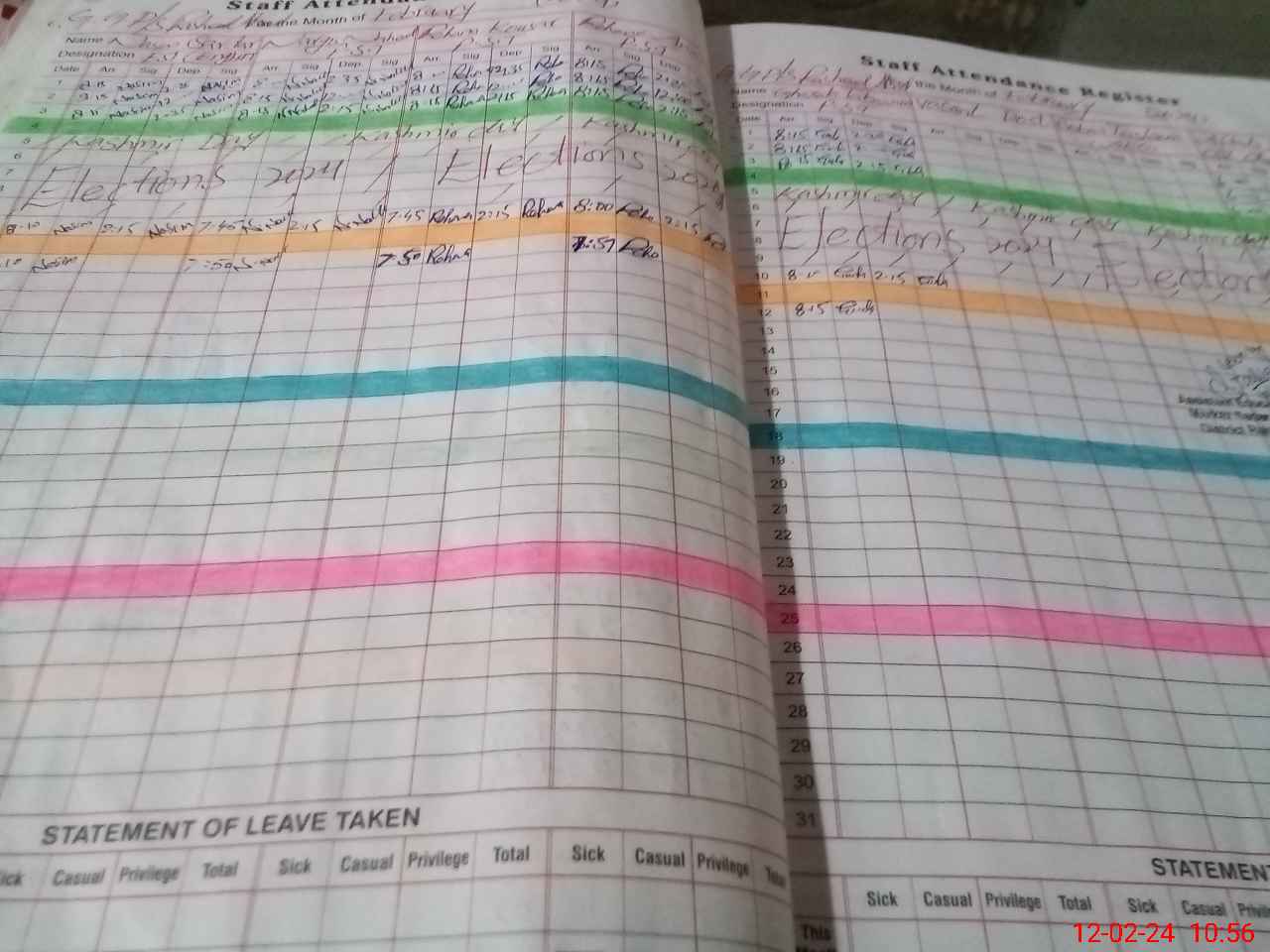 | CNIC | Full Name | Designation | R/C | Absence During Last Calender Month |