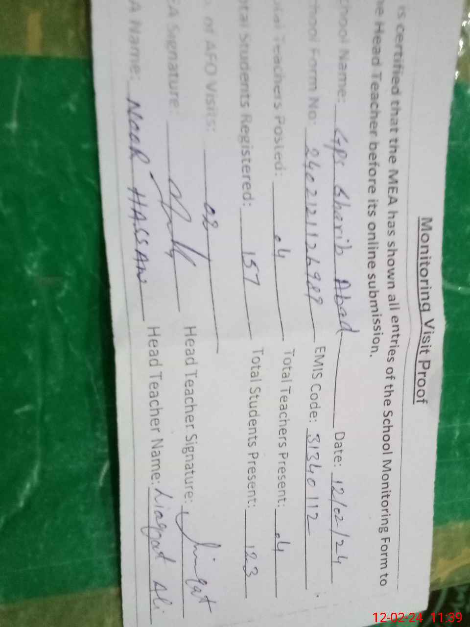 | EMIS Code: 31340112 | Name of School: GPS GHARIB ABAD | |||
