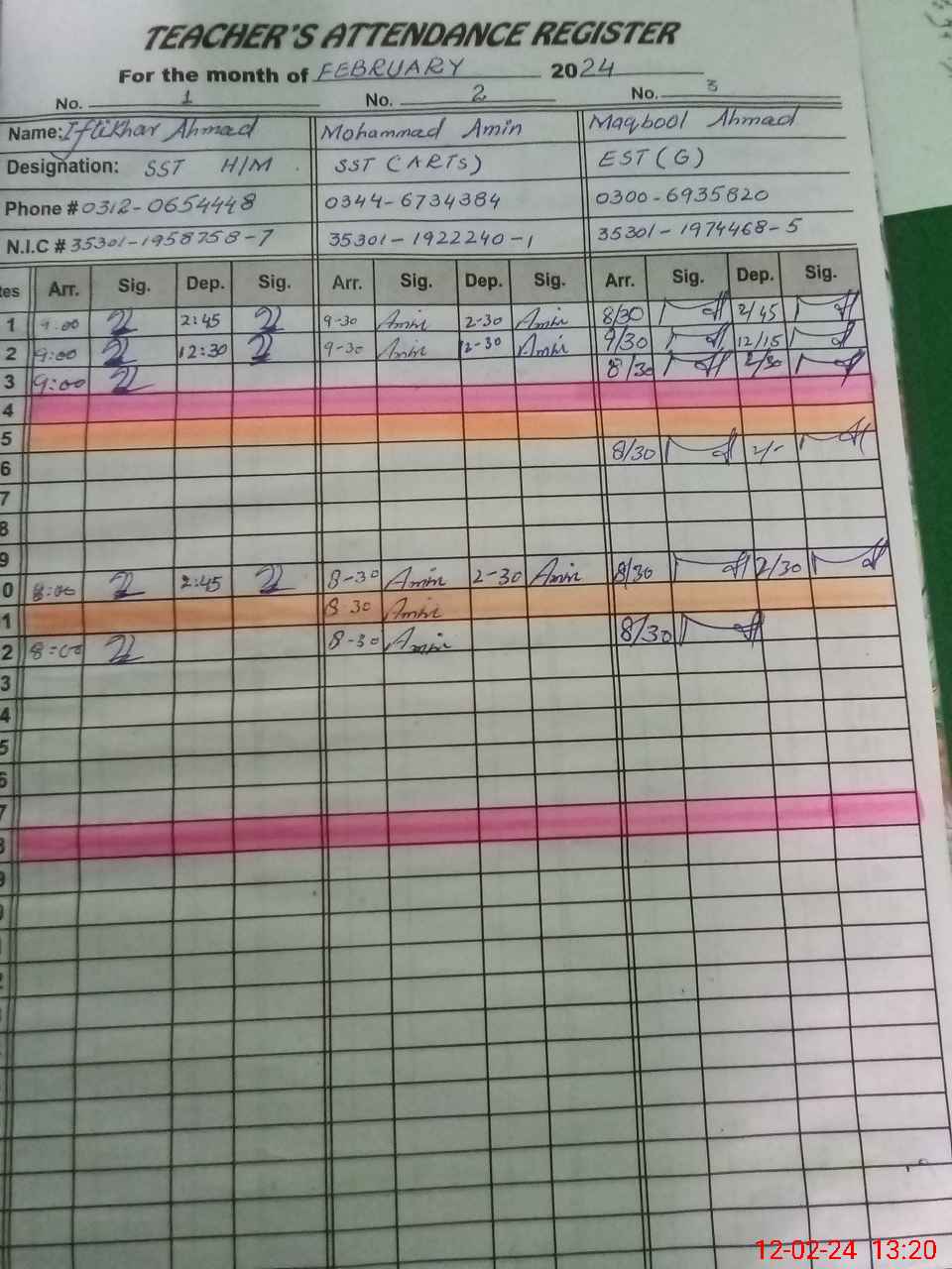 | Name: IF**** AH**** Designation: (School Headmaster's/Headmistress's) SST INCHARGE HM Phone/Cell Number: 03**** |