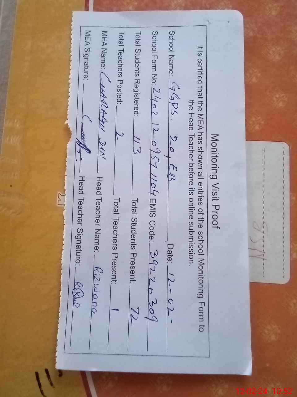 | EMIS Code: 39220309 | Name of School: GGES 20 EB POST OFFICE 30 EB | |||