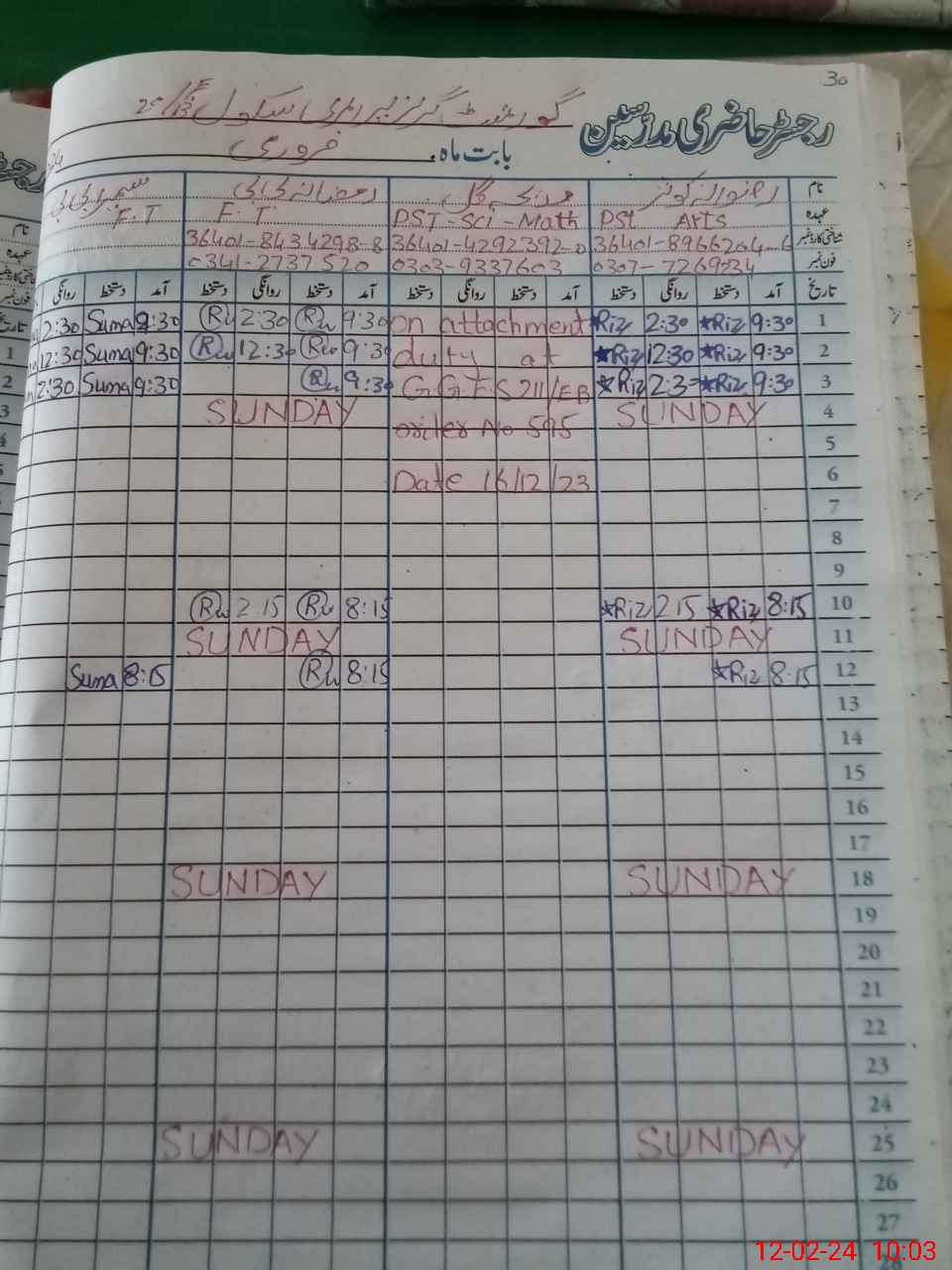 | Name: Sh**** Kh**** Designation: (School Headmaster's/Headmistress's) EST Phone/Cell Number: 03**** |