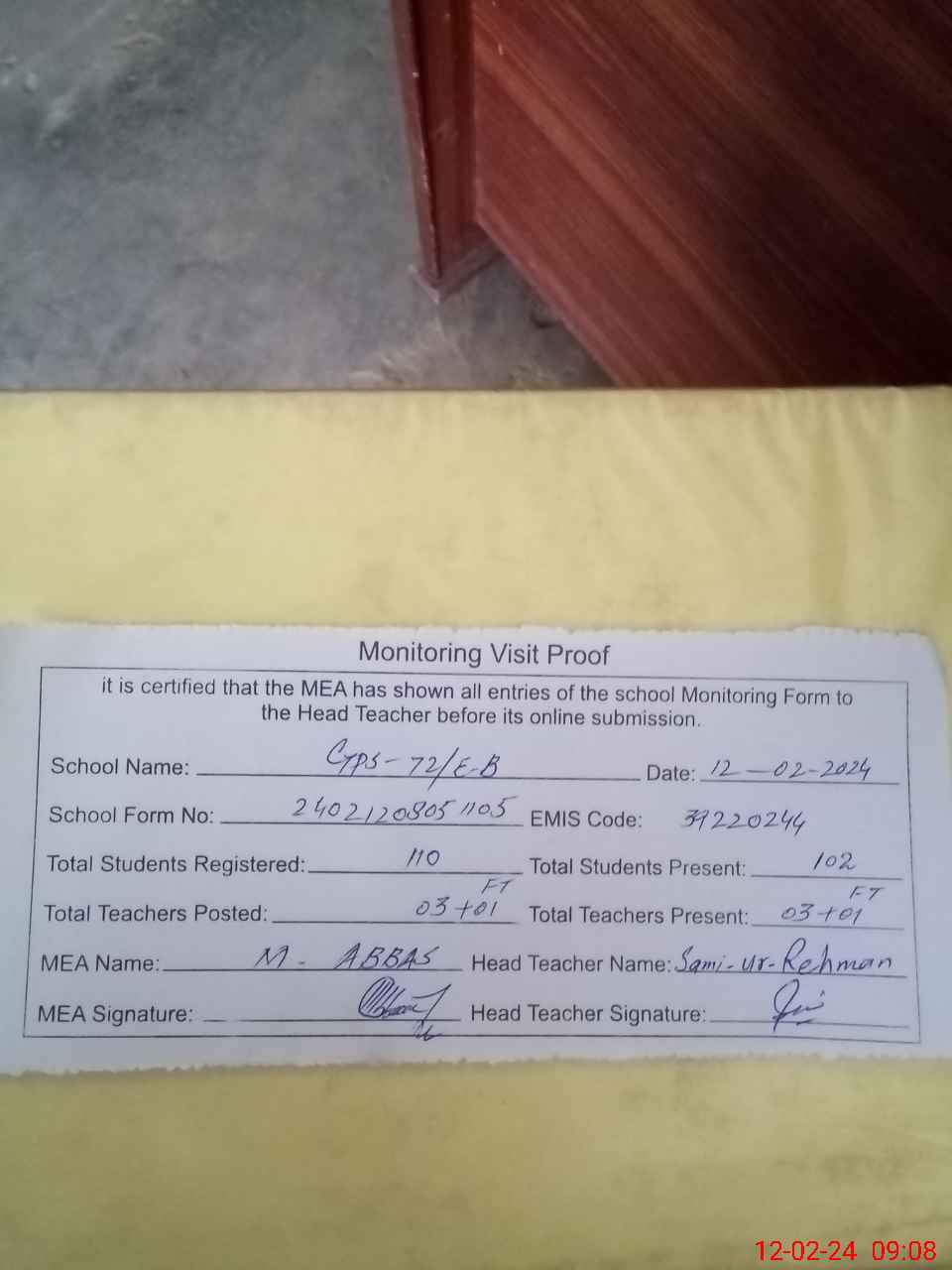 | EMIS Code: 39220244 | Name of School: GPS 72 EB | |||
