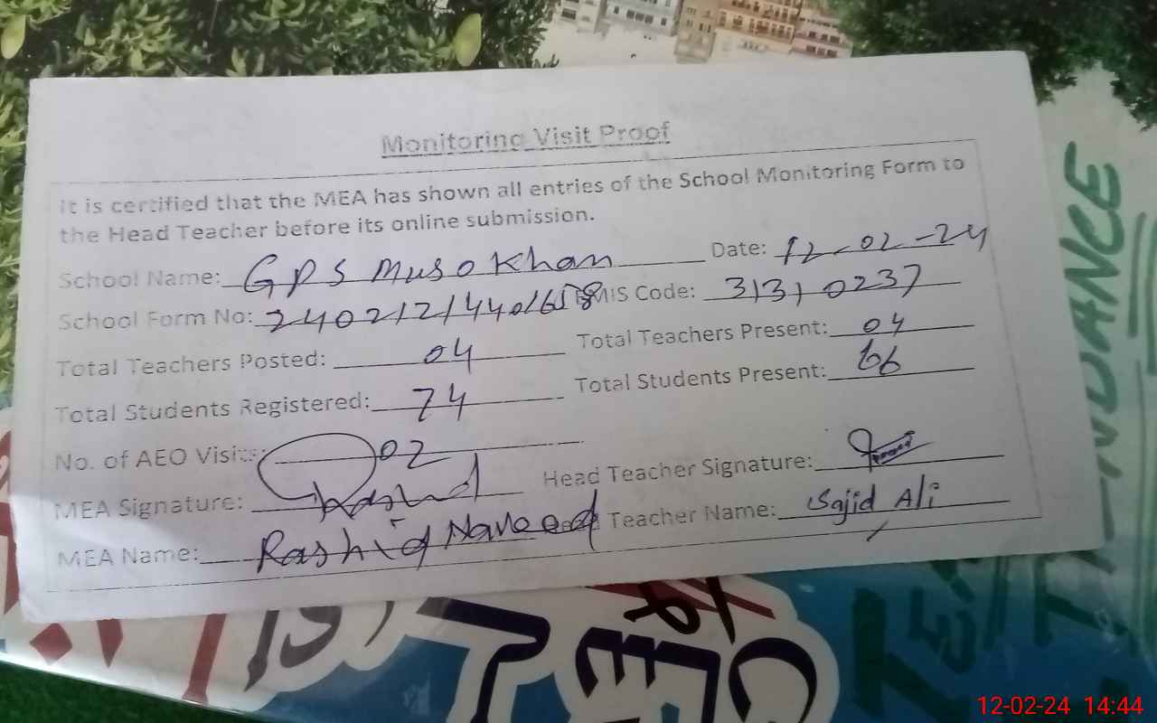 | EMIS Code: 31310237 | Name of School: GPS MUSU KHAN | |||