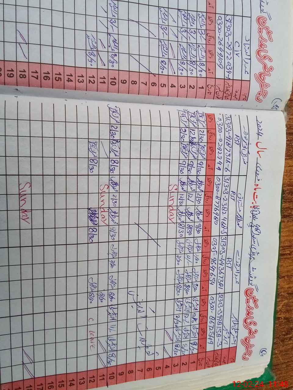 | CNIC | Full Name | Designation | R/C | Absence During Last Calender Month |