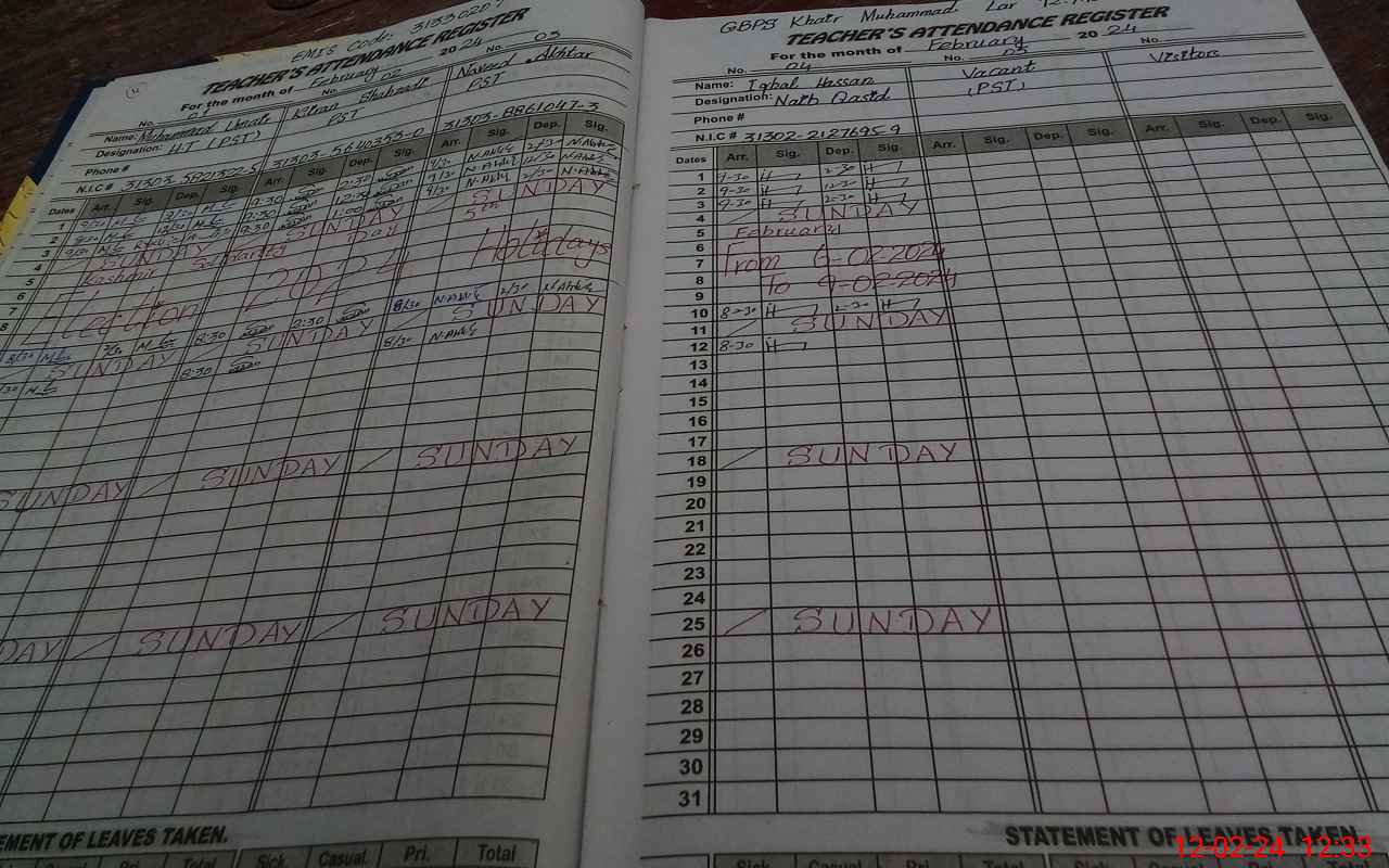 | EMIS Code: 31330207 | Name of School: GPS KHAIR MUHAMMAD LAR | |||