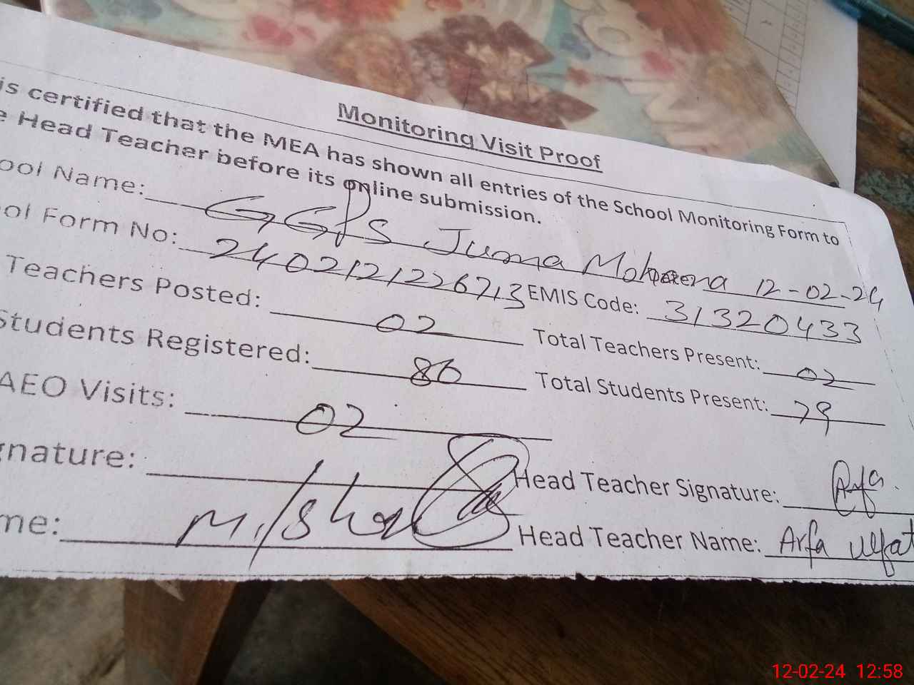 | EMIS Code: 31320433 | Name of School: GGPS JUMA MOHANA | |||