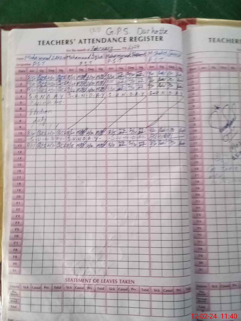 | Leave | Duty | Absent | Maternity | Medical | Ex- Pak |