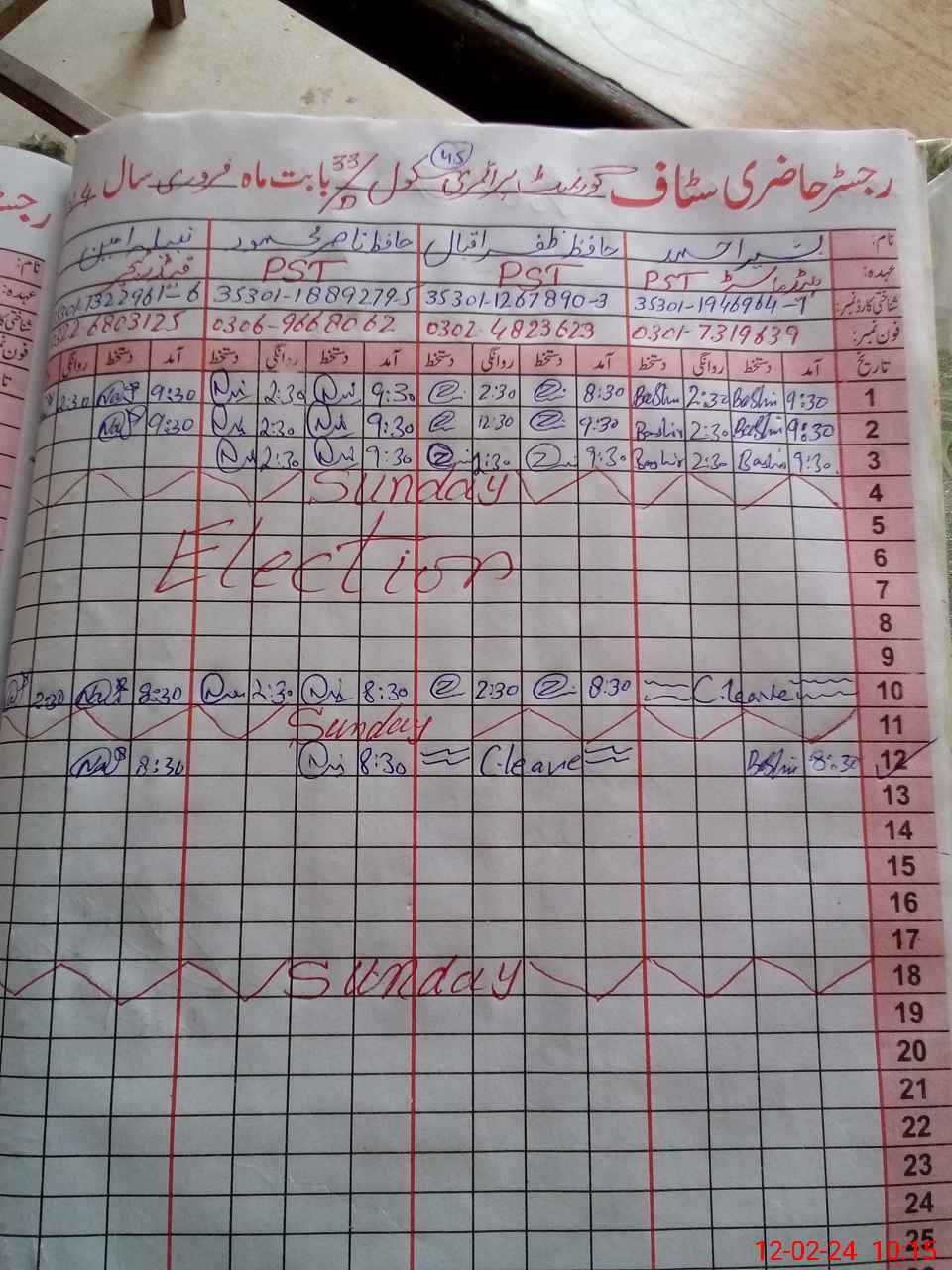 | CNIC | Full Name | Designation | R/C | Absence During Last Calender Month |