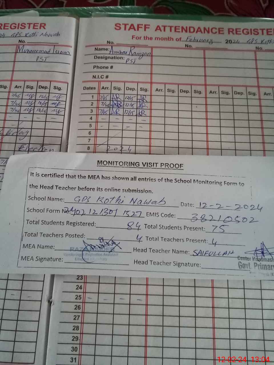 | EMIS Code: 38210502 | Name of School: GPS KOTHI NAWAB | |||
