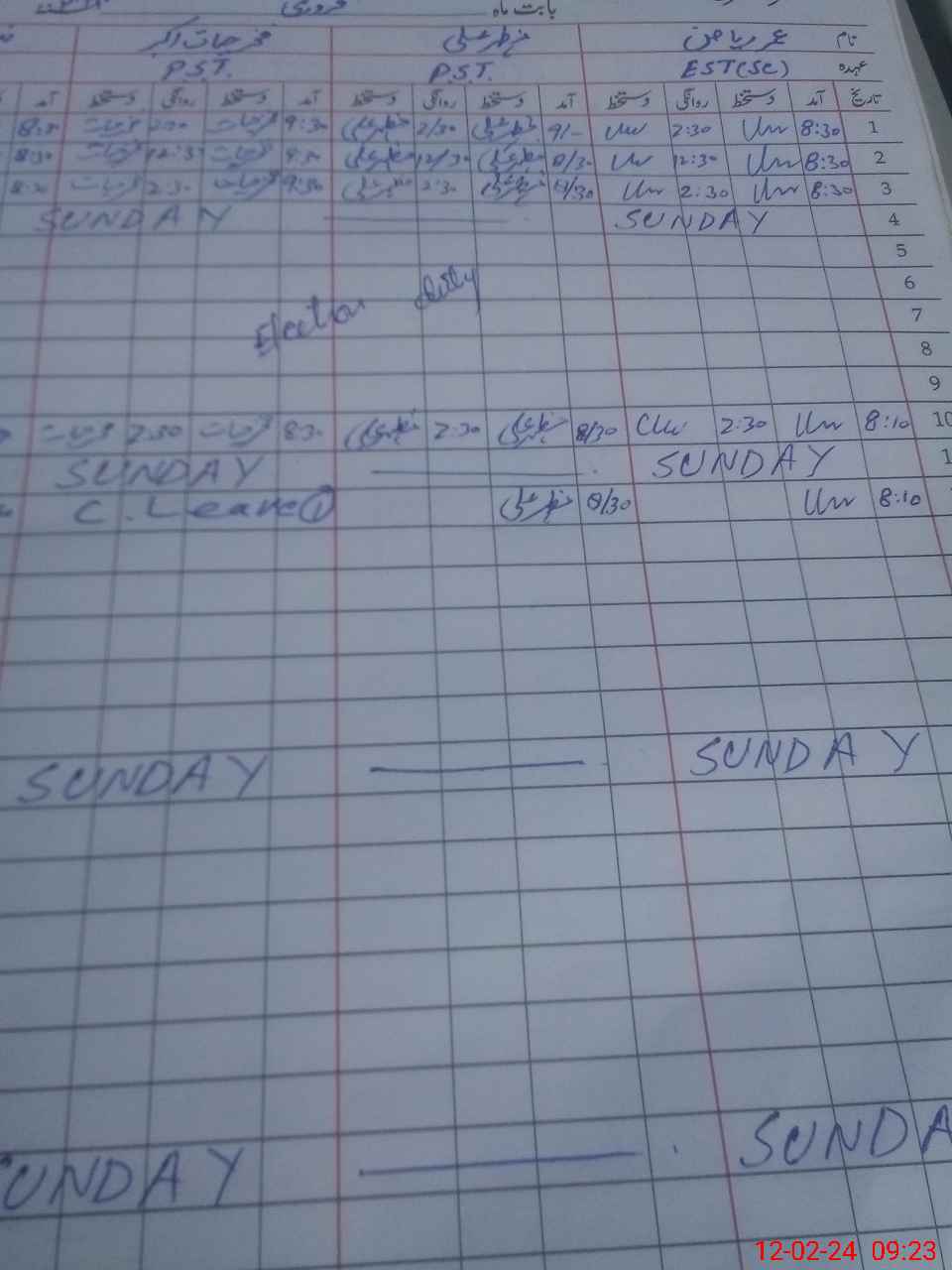 | CNIC | Full Name | Designation | R/C | Absence During Last Calender Month |