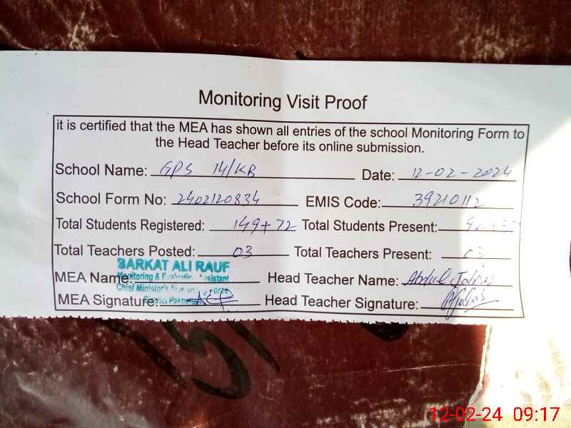 | EMIS Code: 39210112 | Name of School: GPS 14 KB P.O KALYANA | |||