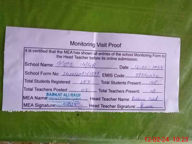 | EMIS Code: 39210070 | Name of School: GGES 14 KB PAKPATTAN | |||