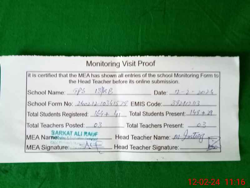 | Certified that this School was Inspected by the Undersigned MEA/DMO Today and the Information Stated Above is as Per Record. | |||||