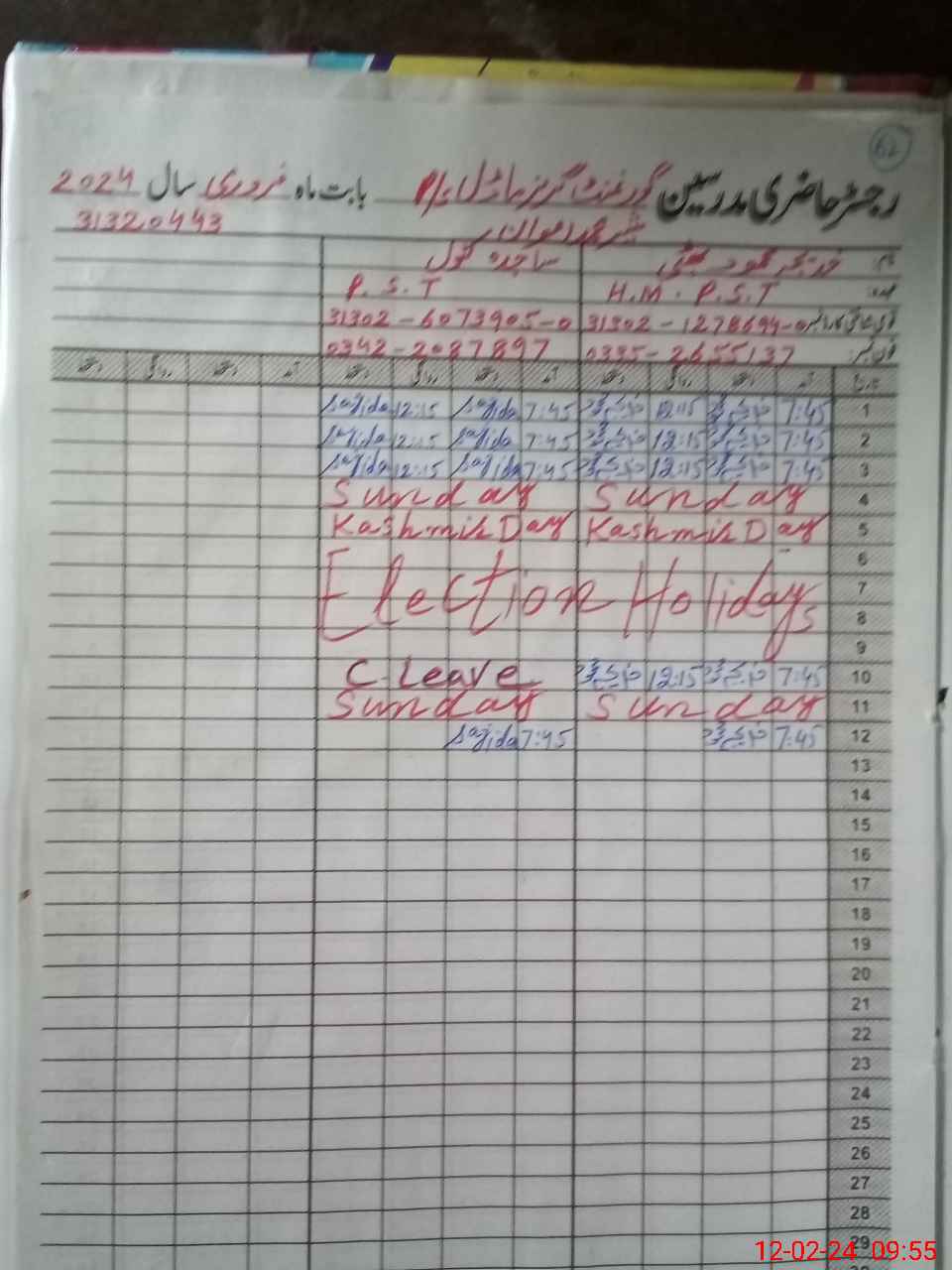 | Name: KH**** ME**** BH**** Designation: (School Headmaster's/Headmistress's) PST/PTC/JV Phone/Cell Number: 03**** |