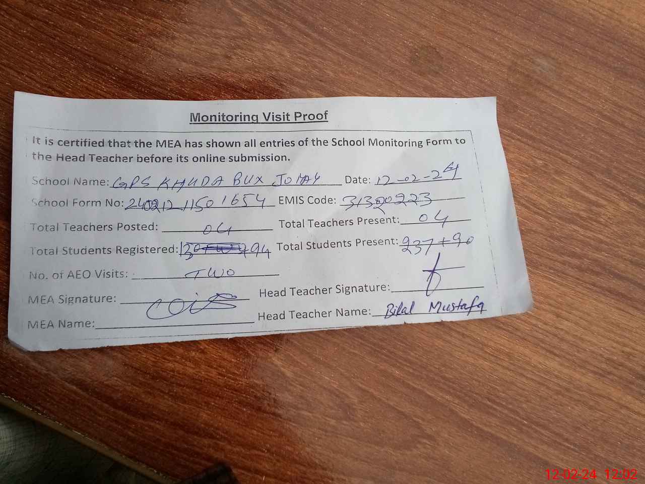 | EMIS Code: 31320223 | Name of School: GPS KHUDA BUKSH JOIYA | |||