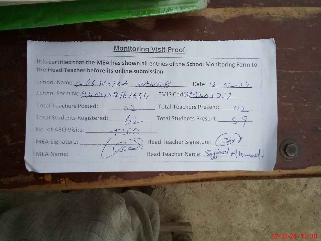 | EMIS Code: 31320227 | Name of School: GPS KOTLA NAWAB | |||