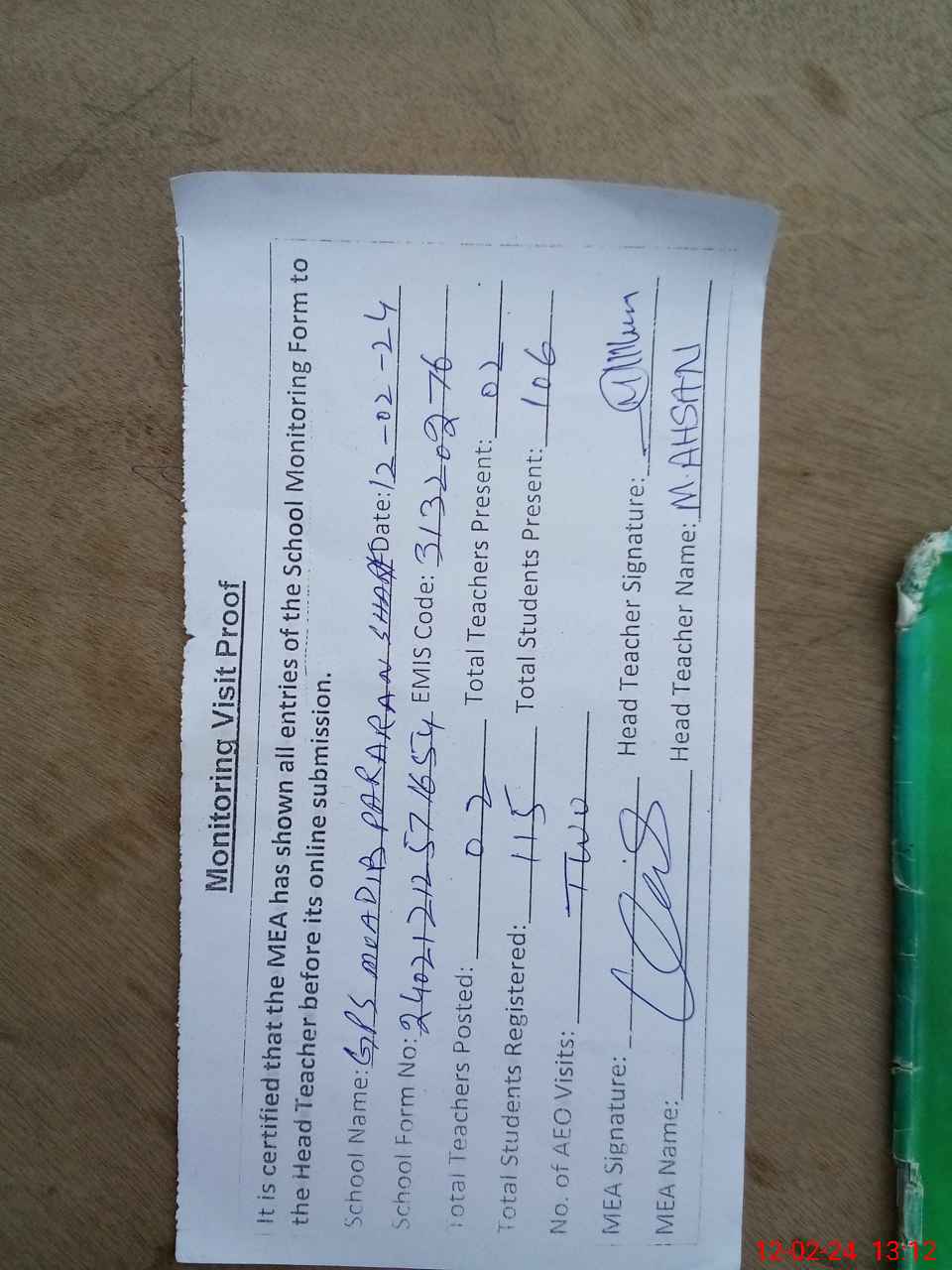 | EMIS Code: 31320276 | Name of School: GPS MOADIB PARAN SHARIF | |||