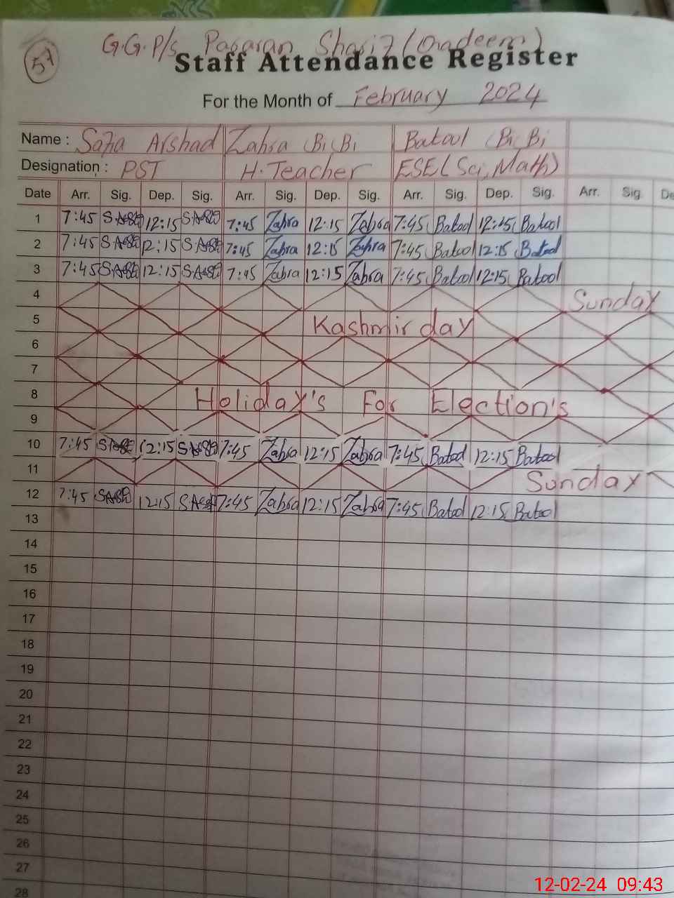 | Name: ZA**** BI**** Designation: (School Headmaster's/Headmistress's) PST/PTC/JV Phone/Cell Number: 03**** |