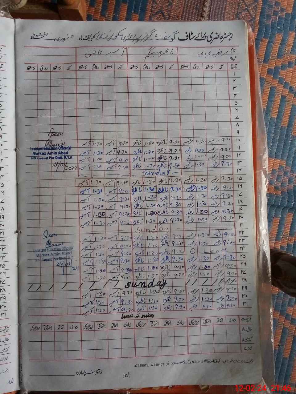 | District: RAHIMYAR KHAN | Tehsil: LIAQATPUR | Markaz: AMIN ABAD - FEMALE | Level: Primary | |