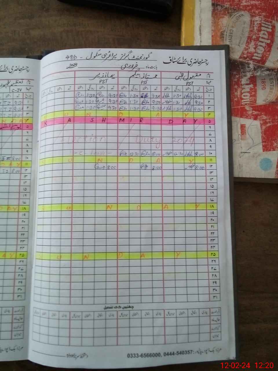 | Name: Ma**** Il**** Designation: (School Headmaster's/Headmistress's) PTC/JV Phone/Cell Number: 03**** |