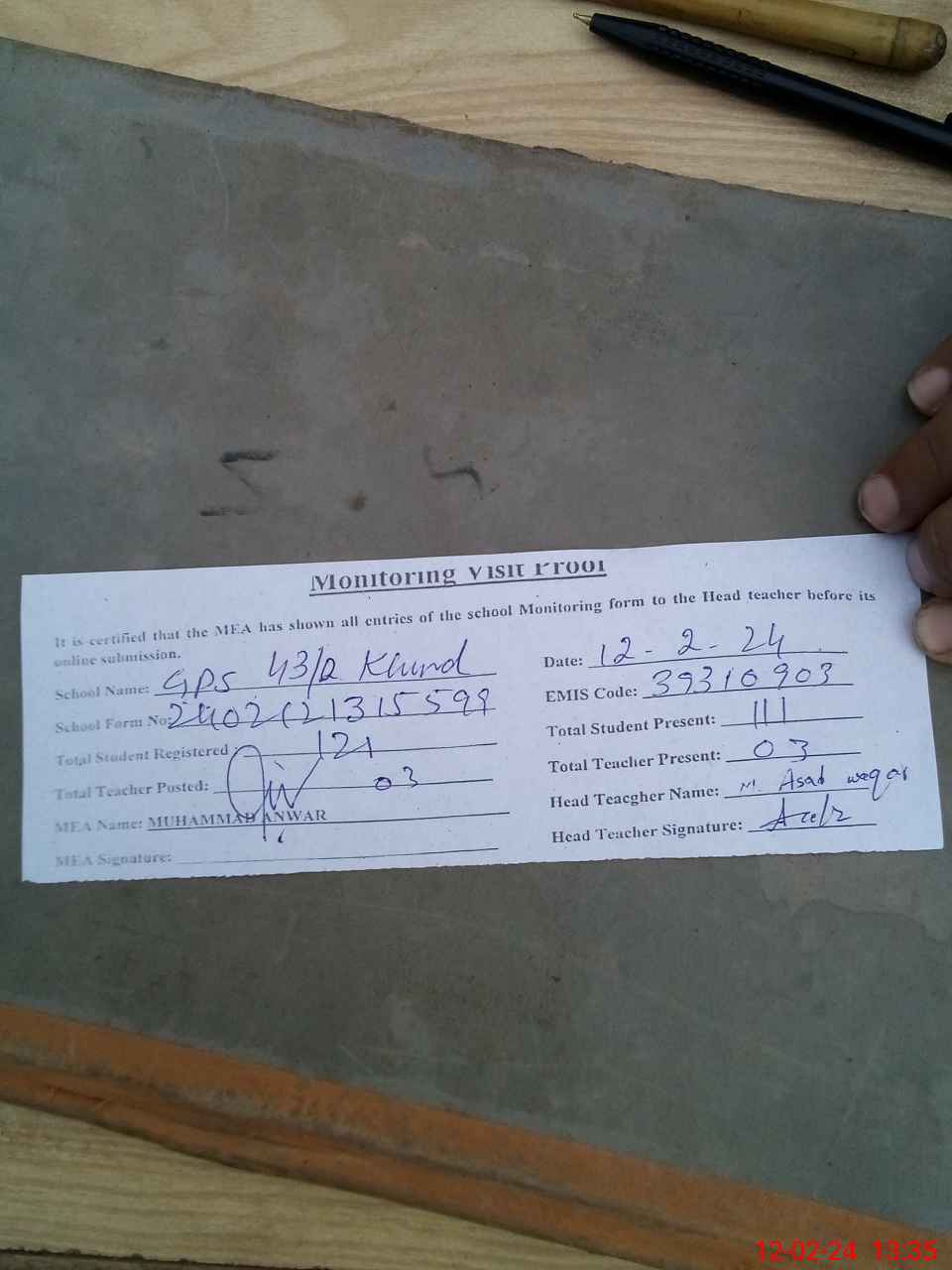 | EMIS Code: 39310903 | Name of School: GPS CHAK 43 D KHURD | |||
