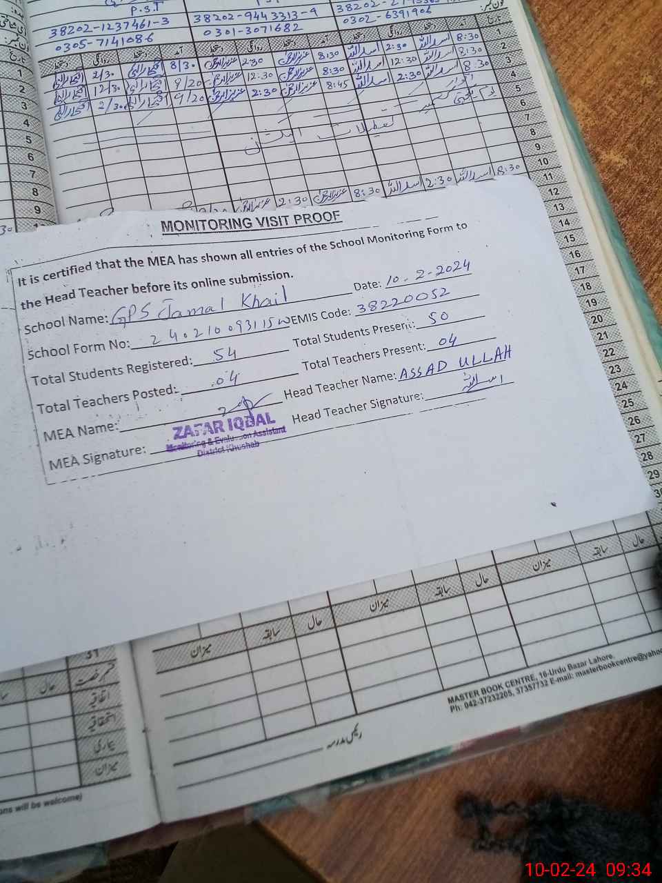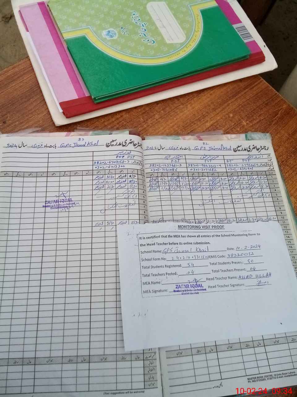 | EMIS Code: 38220052 | Name of School: GPS JAMAL KHAIL | |||