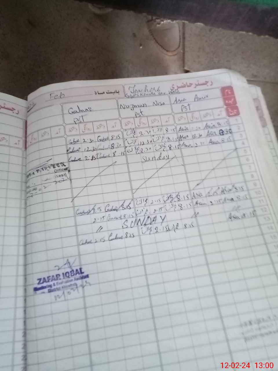 | CNIC | Full Name | Designation | R/C | Absence During Last Calender Month |
