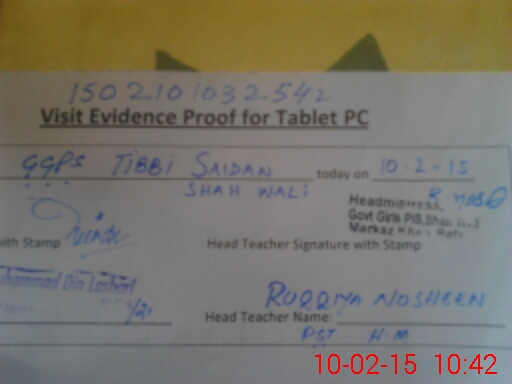 | Attendance Register | Head Teacher | MEA with School | Visit Proof |