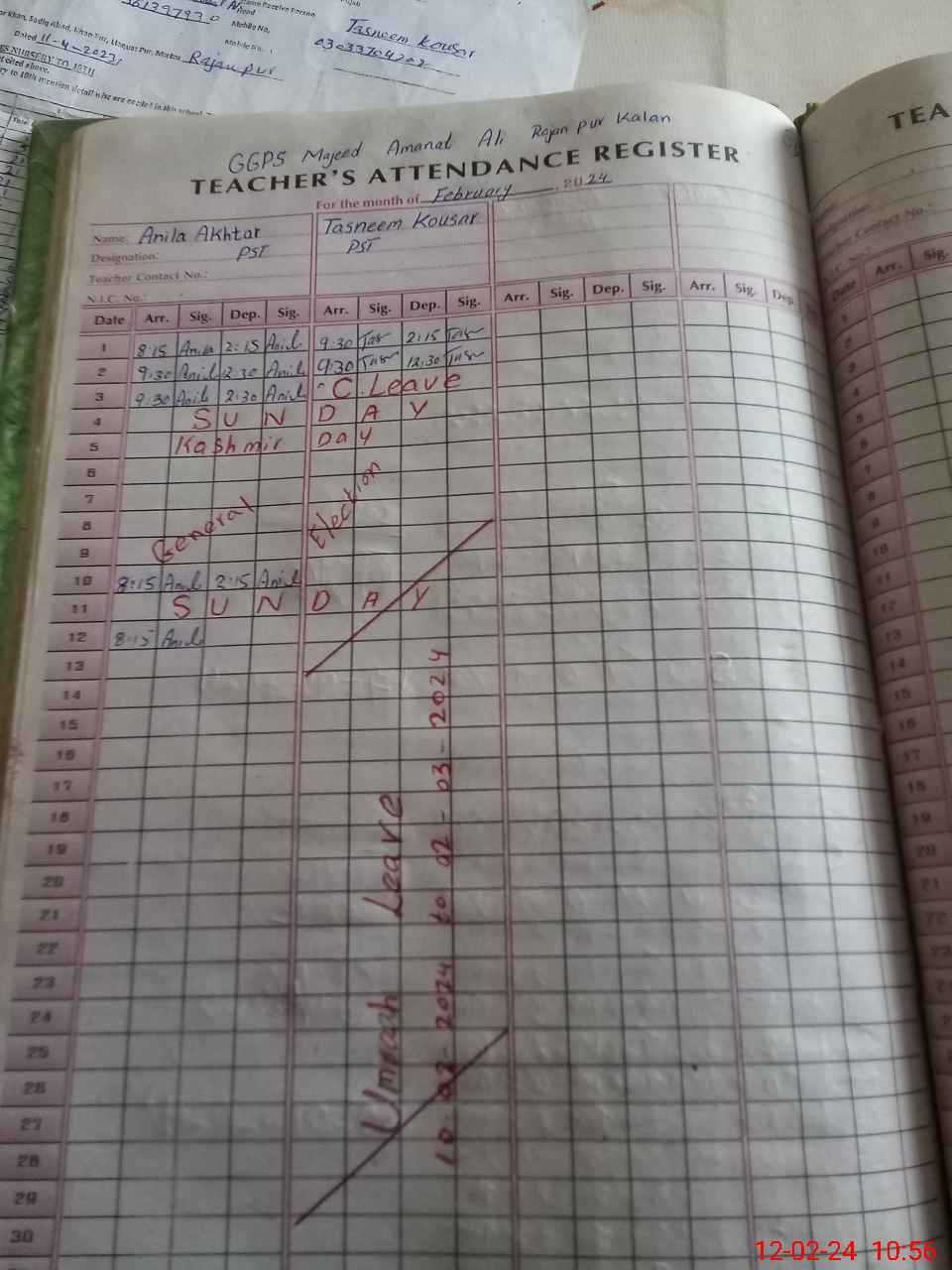 | Name: AN**** AK**** Designation: (School Headmaster's/Headmistress's) ESE(SCI-MATH) Phone/Cell Number: 03**** |