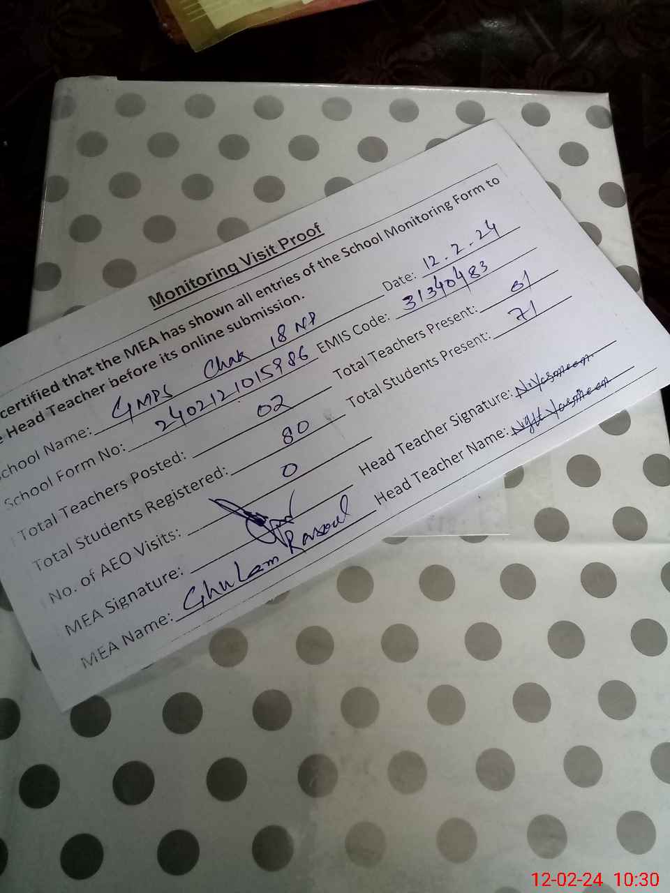 | EMIS Code: 31340483 | Name of School: GMPS 18 NP | |||