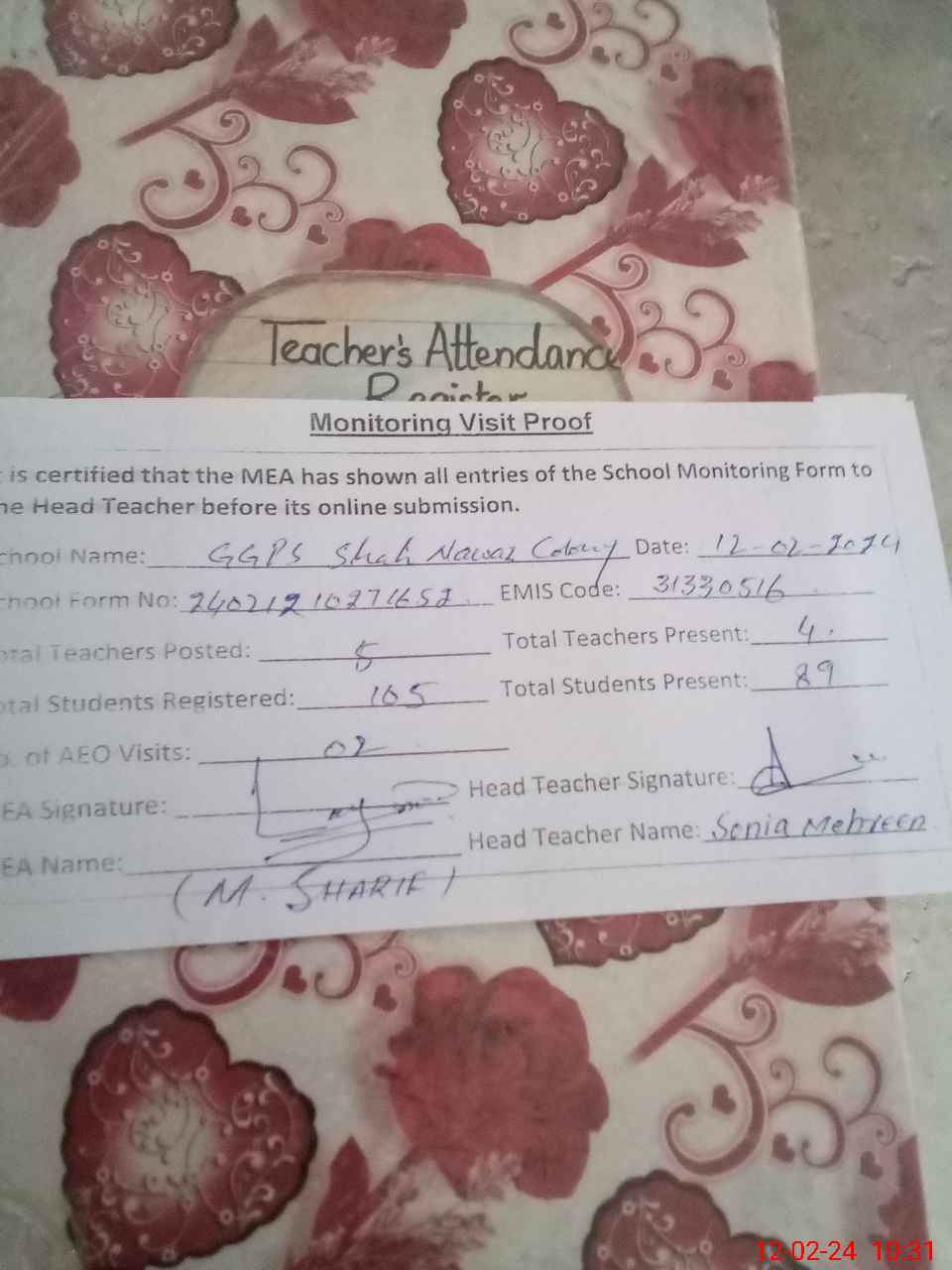 | EMIS Code: 31330516 | Name of School: GGPS SHAH NAWAZ COLONY | |||