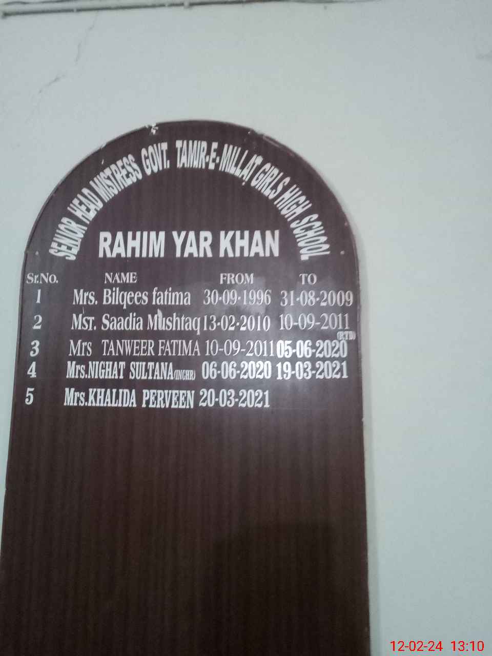 | EMIS Code: 31330041 | Name of School: GGHS TAMIR-E-MILLAT | |||