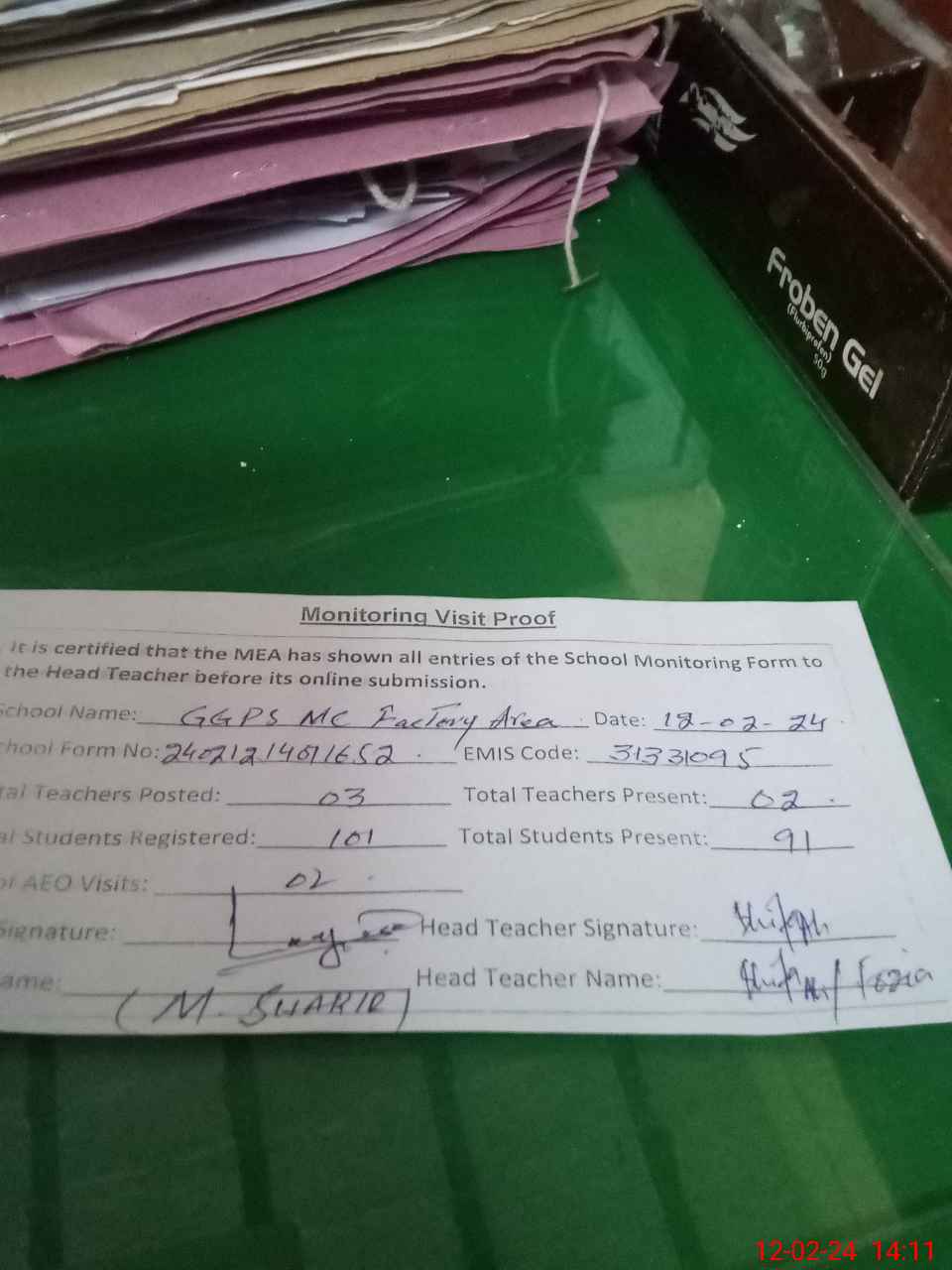 | EMIS Code: 31331095 | Name of School: GGPS MC FACTORY AREA | |||
