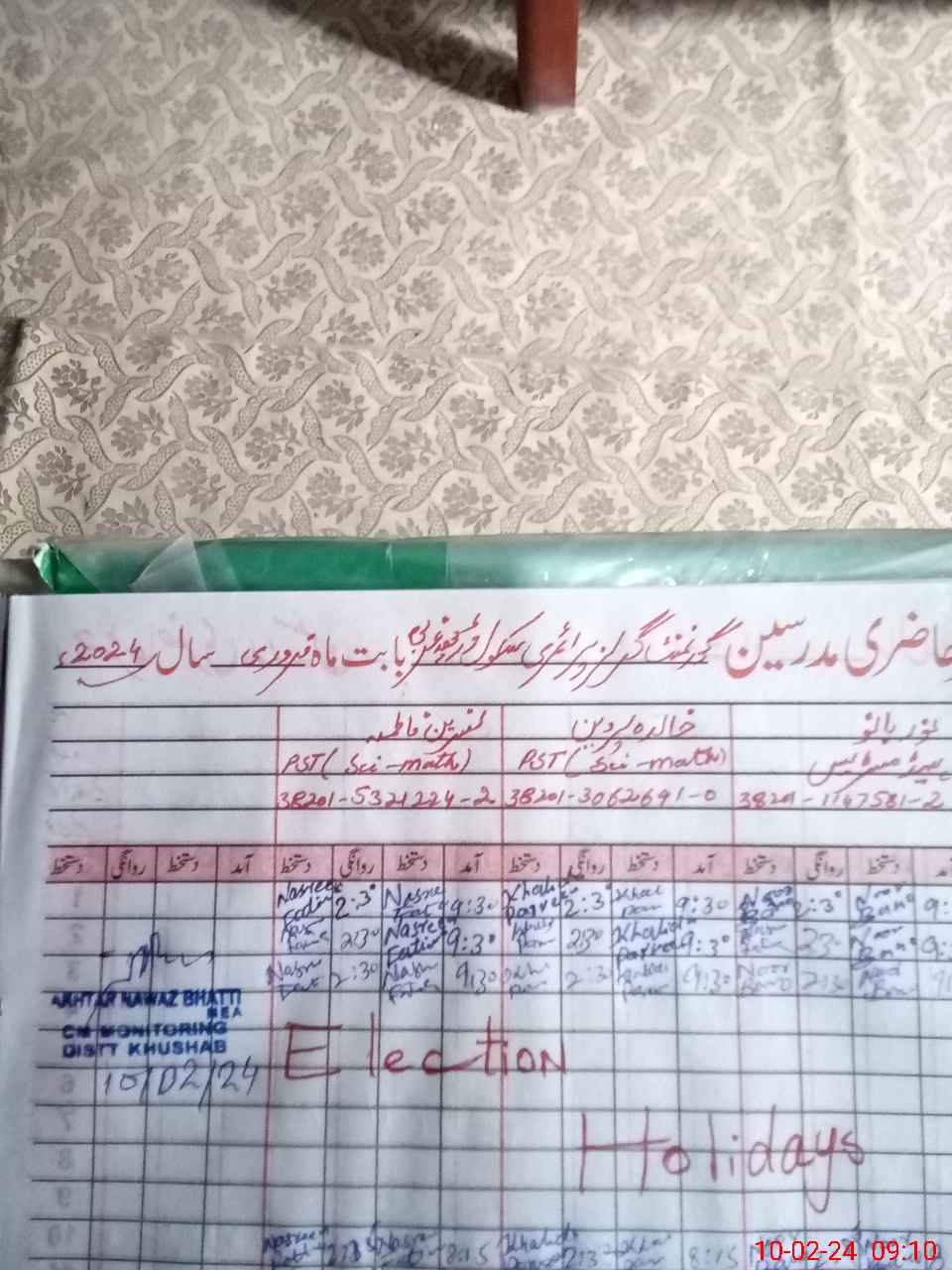 | Name: No**** Ba**** Designation: (School Headmaster's/Headmistress's) PST Phone/Cell Number: 03**** |