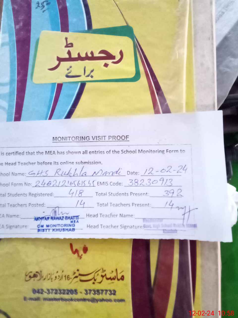 | EMIS Code: 38230913 | Name of School: GHS RUKHLA MANDI | |||