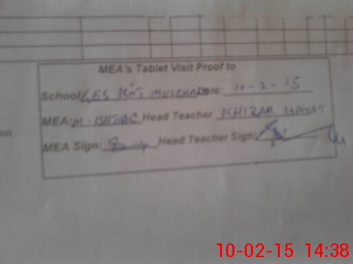 | Attendance Register | Head Teacher | MEA with School | Visit Proof |