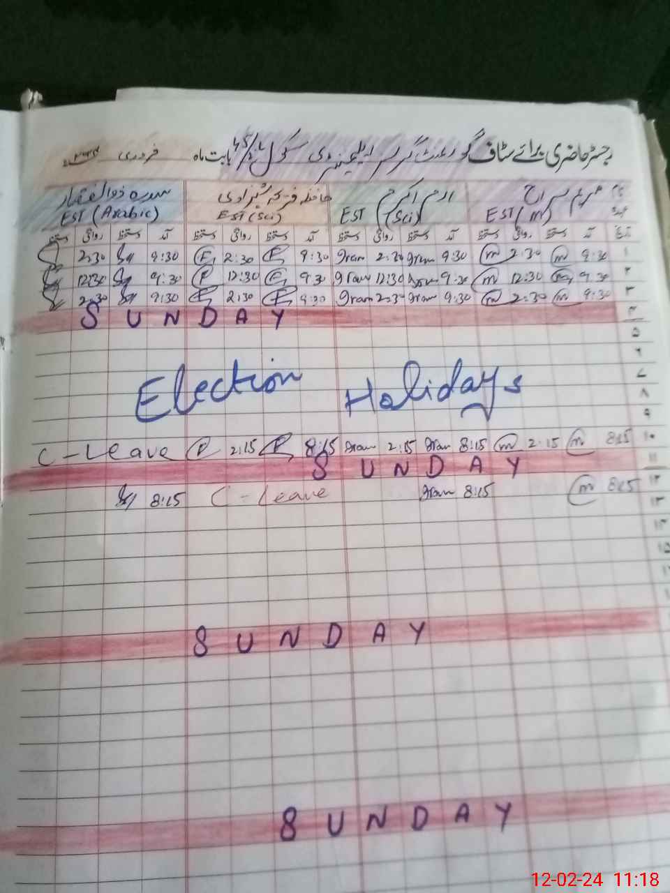 | Leave | Duty | Absent | Maternity | Medical | Ex- Pak |