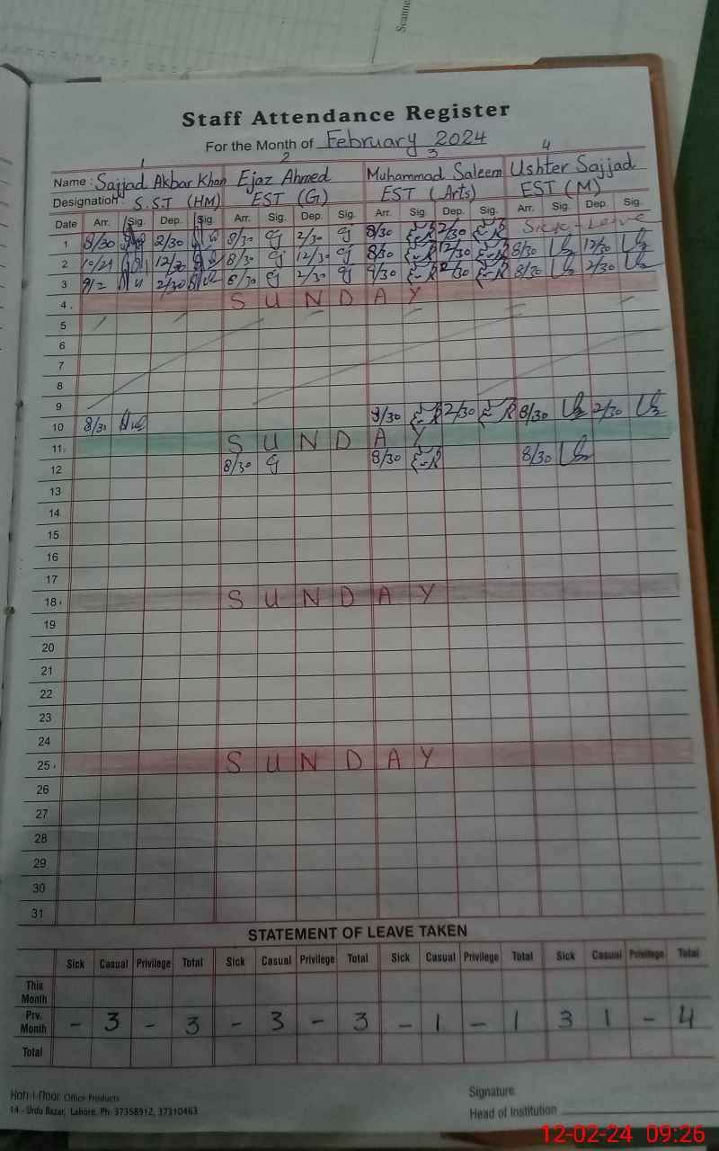 | 31**** | Sa**** Ak**** Kh**** | Regular | 2 | 2 | 0 | 0 | 0 | 0 | 0 | 0 | 2 | Absent (Un-Authorized) | |