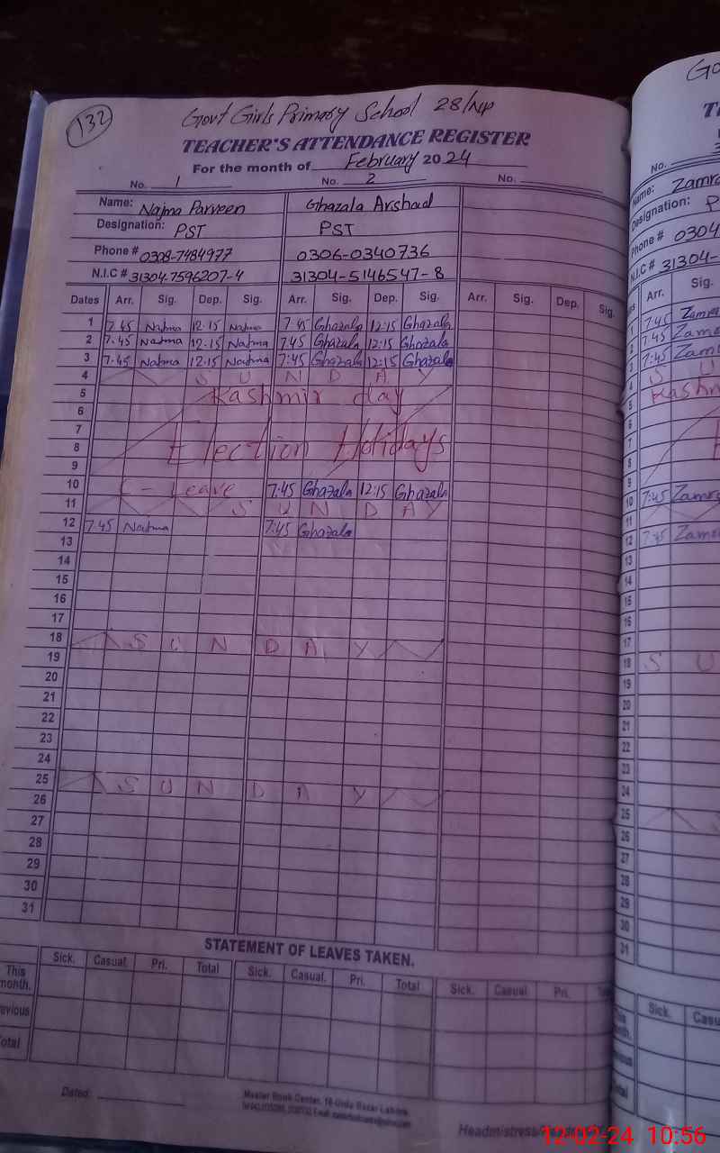 | Name: NA**** PE**** Designation: (School Headmaster's/Headmistress's) PST/PTC/JV Phone/Cell Number: 03**** |
