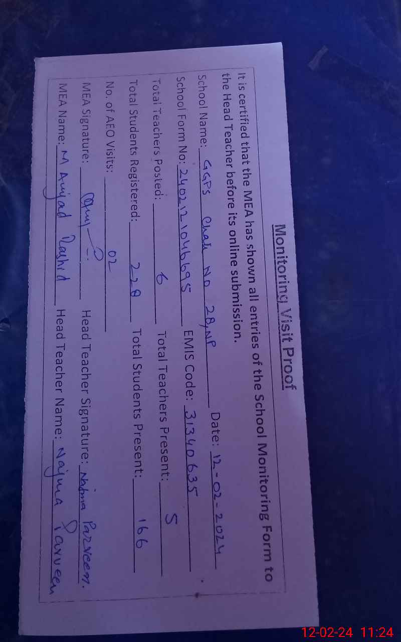 | EMIS Code: 31340635 | Name of School: GGPS 28/NP SUNJER PUR | |||