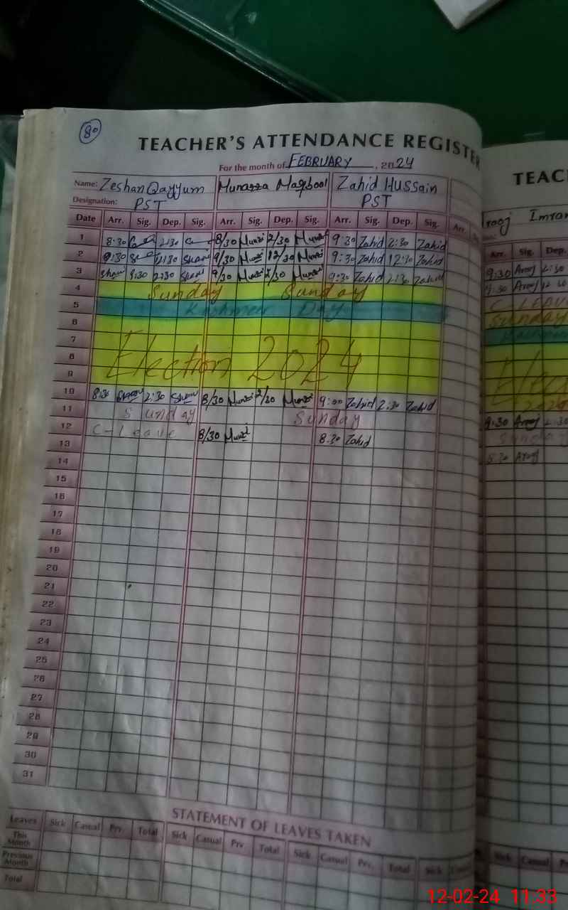 | 31**** | Ze**** Qa**** | PST | Regular | 4 | 0 | 0 | 0 | 0 | 0 | 0 | 0 | 4 | Casual |