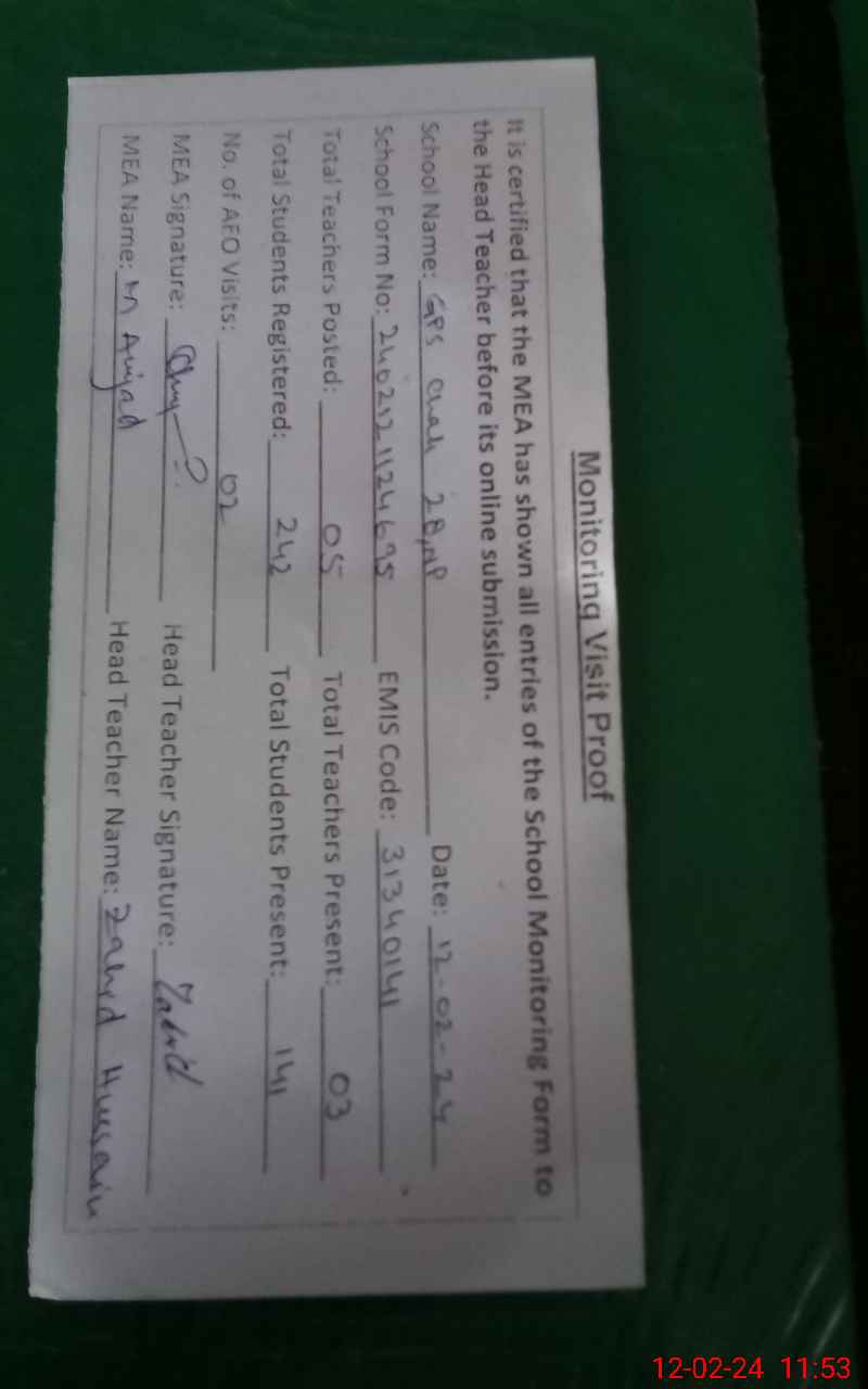 | EMIS Code: 31340141 | Name of School: GPS CHAK NO 28/NP | |||