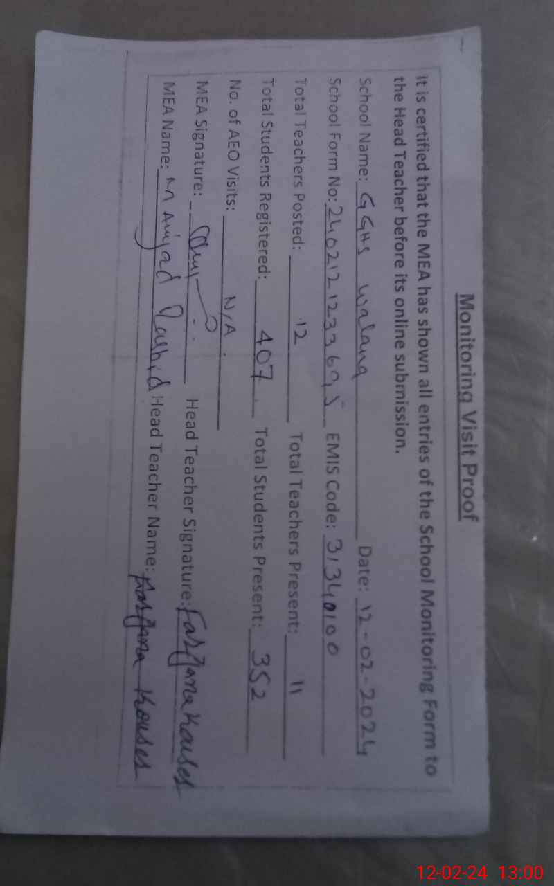 | EMIS Code: 31340100 | Name of School: GGHS WALANA | |||
