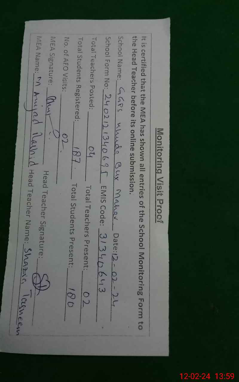 | EMIS Code: 31340643 | Name of School: GGPS KHUDA BUX MEHAR NO .2 | |||