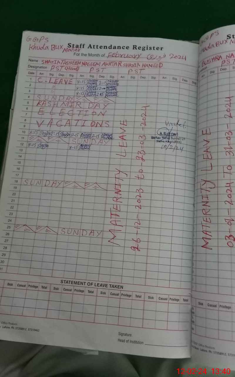 | Name: SH**** TA**** Designation: (School Headmaster's/Headmistress's) PST/PTC/JV Phone/Cell Number: 03**** |