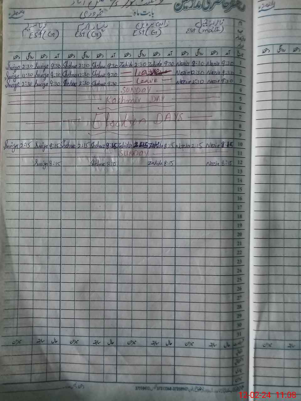| 38**** | Ha**** Ul**** Kh**** | PST | Temporary | 0 | 0 | 0 | 0 | 0 | 0 | 0 | 0 | 0 | Absent (Un-Authorized) |