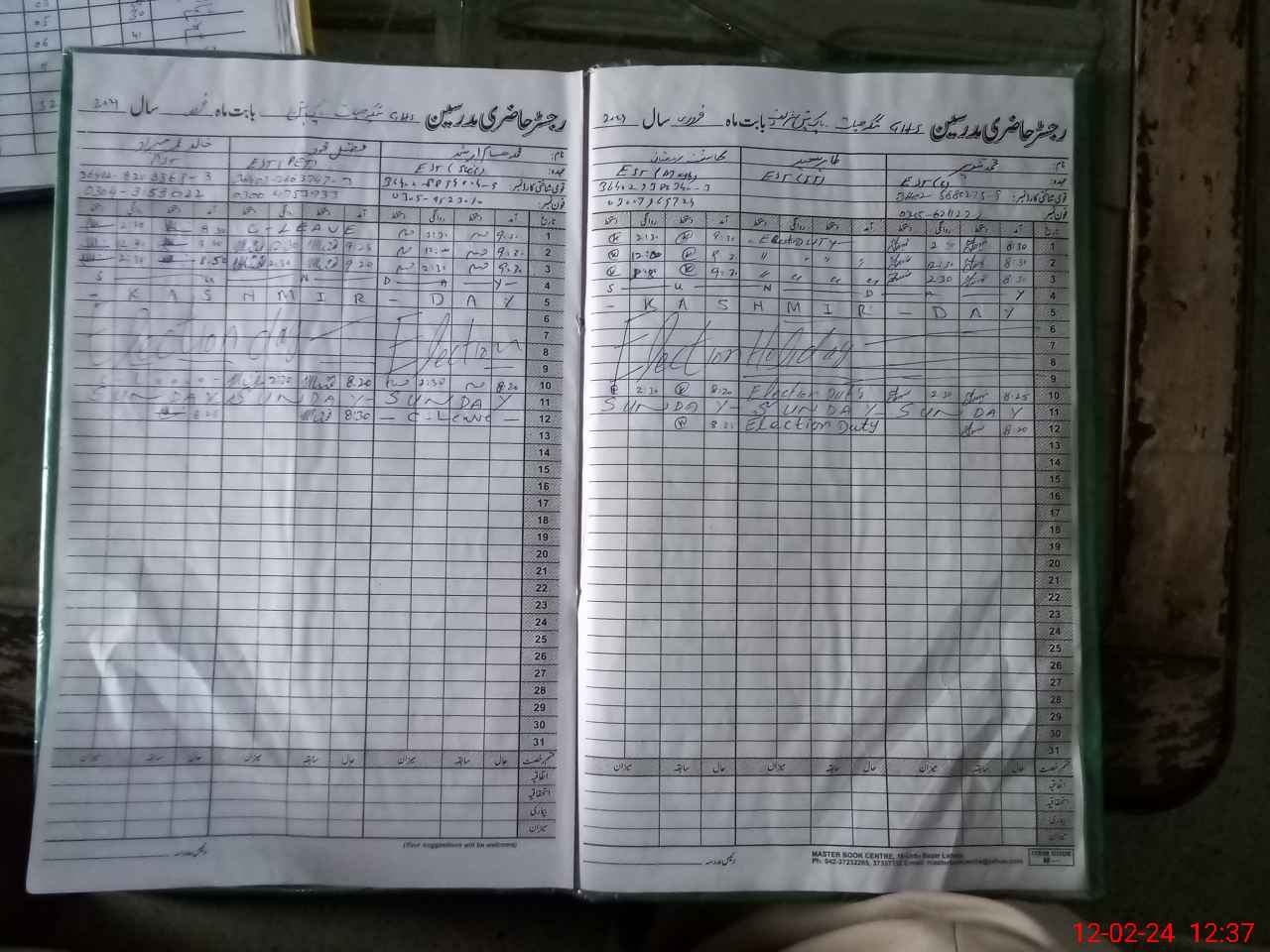 | CNIC | Full Name | Designation | R/C | Absence During Last Calender Month |